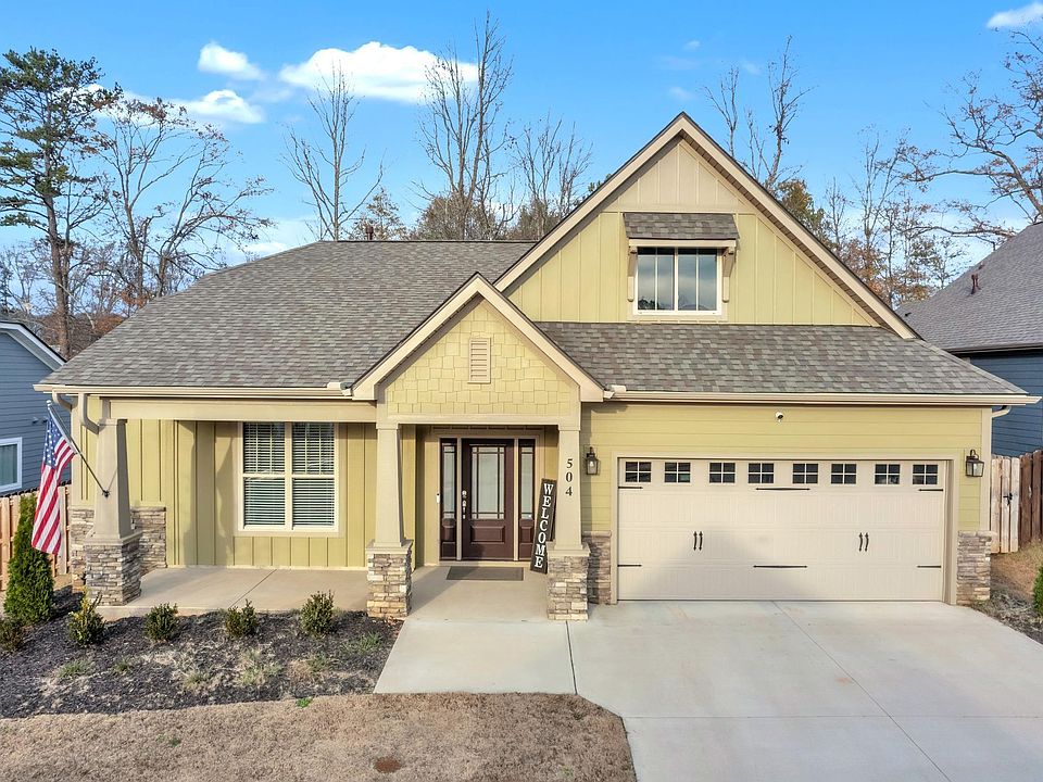 Don't miss out on this upscale subdivision between Simpsonville and Mauldin! This almost new construction craftsman-style home has been lovingly maintained and lived in for just one year. Situated in a wonderful neighborhood with quality-built homes featuring many custom details, this 4-bedroom, 3-bath home plus flex room is ready for its next owner. The gourmet kitchen is a chef's dream, boasting 42" tall cabinets with crown molding, upgraded quartz countertops, a stylish tile backsplash, and an upgraded stainless steel appliance package, including a gas range. The huge island, accented with pendant lighting, provides additional seating and workspace. The dining area is wrapped in elegant wainscoting for added charm. The great room features a stacked stone fireplace with gas logs, creating a cozy and inviting atmosphere. The primary owner's suite, located on the main level, offers a spa-like experience with a ceramic tile shower and corner seat, a long vanity with double sinks, a 6' garden soaking tub, and a walk-in closet with multiple-level hanging. Upstairs, you'll find two generously sized bedrooms or flex/media rooms, multiple closets, and a full bath, providing plenty of space for everyone. Out back, enjoy the serene outdoor living area, complete with a 15x12 covered back porch featuring a stacked stone gas log fireplace and an additional 11x14 patio—perfect for relaxation or entertaining. This home combines comfort, style, and quality in a location that’s convenient to everything. Don’t miss this opportunity to make it yours!