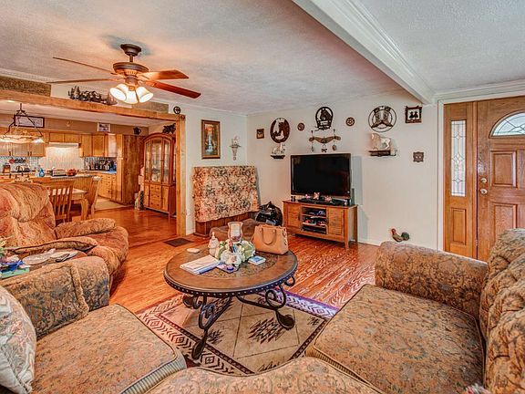 Welcome to this beautiful home situated on a spacious private lot, featuring a delightful covered porch that sets the perfect stage for relaxation and outdoor enjoyment. This home needs cosmetic upgrades. The open living room boasts stunning hardwood floors that add warmth and elegance to the space. The master bedroom, which is generously proportioned, offers a touch of charm with its French doors leading to a deck, allowing for tranquil views of the surroundings. The master bathroom is tastefully designed with double sinks and a soaking tub, providing convenience and style. Additionally, there are three other well-sized bedrooms and a full bathroom that cater to the needs of a growing household or guests. For those seeking to bring the outdoors inside, an inviting and spacious sunroom awaits, providing endless possibilities for entertainment and leisure activities. The deck, which gracefully wraps around the entire back of the home, offers a seamless integration of indoor and outdoor living, while providing a picturesque outlook onto the lush wooded lot. To accommodate vehicles and storage needs, there is a covered parking area with a detached two-car carport, ensuring protection from the elements. Furthermore, a substantial detached three-bay garage/workshop presents ample space for various hobbies, projects, or storage requirements. With its attractive renovation and numerous desirable features, this home is truly a remarkable find. Embrace the opportunity to make it your own and enjoy a comfortable and stylish lifestyle in this inviting abode.