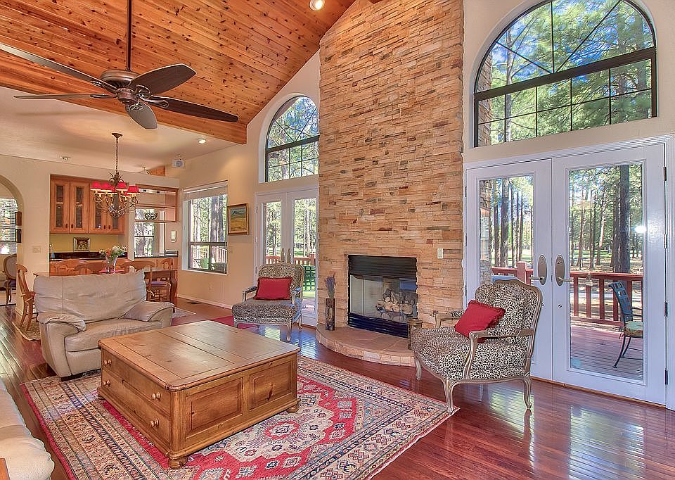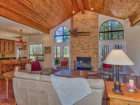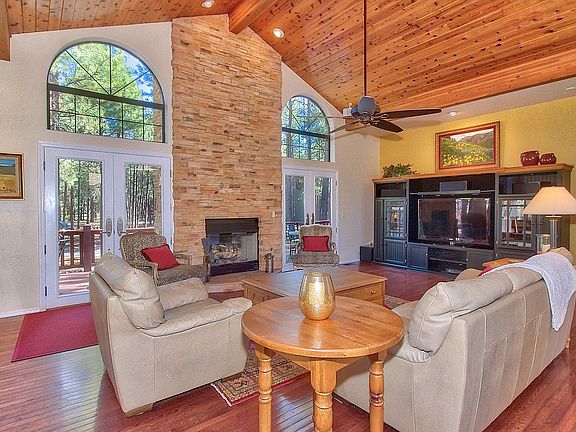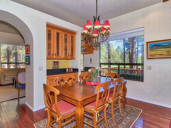 The house is a vacation rental, leased thru the end of August 2022; owner would prefer to close after September 15th but will consider other options that honor existing leases. Three-month summer rental income is $40,000. Extraordinary custom home on quite possibly the most picturesque golf hole in Northern Arizona! Just off the 8th tee at Aspen Valley Golf Club, you'll be mesmerized by the views of the fairway, green, lake, and Mount Elden. This single level, three bedroom, split floor plan offers rich cherry hardwood flooring, a gorgeous great room with vaulted tongue and groove ceiling that opens to a beautiful redwood deck overlooking the golf course. The chef's kitchen is phenomenal - large center island for family and friends to gather around, beautiful maple cabinetry, custom granite and backsplash, Bosch stainless appliances, double oven, large walk-in pantry, and wine refrigerator. Enjoy Flagstaff's outstanding summer weather in the very private, European style courtyard. In the evening, relax in the spacious master suite and bath that features dual closets, separate vanities, walk-in shower, and tub. This is a fabulous home! For Sale by Owner, Colleen, (928) 224-9314, 2% commission for Buyers Realtor.
