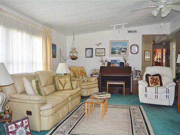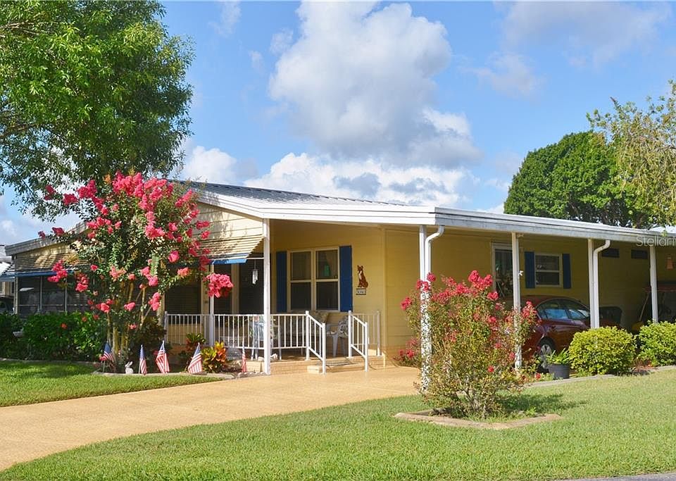 Don't miss this wonderfully landscaped, well maintained, 2 bedroom home on a corner lot in Foxwood Lake Estates.The inviting front porch has a seating area or you can lounge in the very spacious Florida room that is complete with central AC/heat. This room can be enjoyed year round no matter what the weather! Large living room is open to the dining room with a built-in buffet, perfect for entertaining. Kitchen includes a cozy breakfast nook, cabinets with pull out drawers for easy access, built-in desk with additional cabinets and a food pantry. Master bedroom with en-suite bathroom has dual sinks, linen closet, large vanity and THREE CLOSETS, one of which is a walk-in!! Hall bath is across from the second bedroom, great for guests. This home includes a roof over (no roof shingles to worry about) and a top-of-the-line Lennox HVAC system that is only three years old! Foxwood Lake Estates is a fun-loving, caring community with lots of amenities, planned social events, tons of activities and low HOA dues. All this and you also own the land. Come see this great home at a great price!