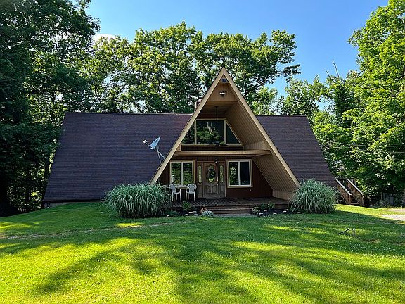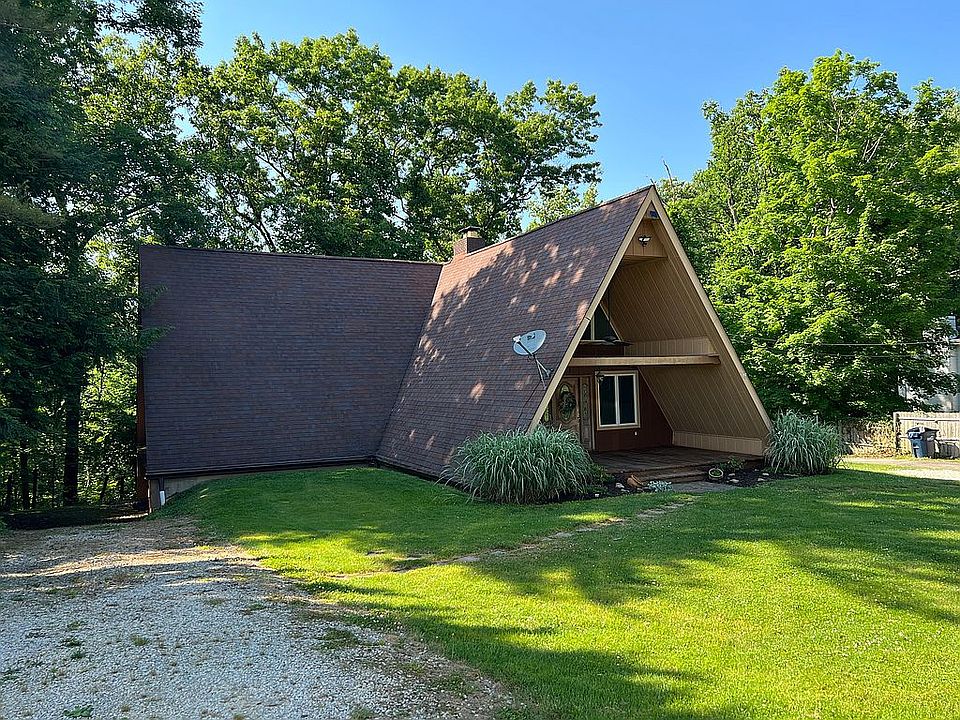 Looks are deceiving, MUCH LARGER THAN IT LOOKS! This bright, open and airy A-Frame home offers 5 BR's, 4 Bathrooms with 4472sqft of living space, including a finished basement, on a quiet cul-de-sac. Just minutes from three elementary schools, middle and high school. In the living room you'll find vaulted ceilings with wood beams and beautiful hardwood floors throughout main level. The large Kitchen with burnt Maple cabinetry and island has French doors leading to 1,500 sq ft of bi-level deck. The kitchen comes fully equipped with all appliances. Off of the spacious formal Dining Room you'll find an additional bonus flex space that can be used as a sitting area great for family and friends to gather. The main-level master suite (with updated bath and walk-in closet) boasts sliders leading to a screened in balcony. Additionally, the laundry room and main bathroom are on main level, with 2 br and 1 bath upstairs and 2 br, 1 bath and family room in finished walkout basement. This home has an abundance of space to raise a family. French doors off kitchen and sitting area lead to deck overlooking a beautiful tree-studded wooded backyard so there's lots of privacy. Sit on your front or back porch with a wooded view and enjoy your morning coffee. If you need the space, don't just drive past this one. This home is a MUST SEE!