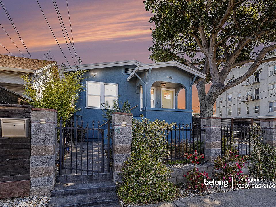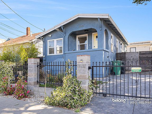Behind a gate and a garden adorned with blooming jasmine and colorful wildflowers, this updated 2-bedroom, 1-bath home offers both charm and comfort in Oakland's desirable Fairfax district. With its deep blue facade, inviting front porch, and mature shade tree, the curb appeal is undeniableand what awaits inside is just as compelling. The living area features recessed lighting, dark-stained wood floors, and clean white walls, offering a blank canvas for your personal style. Its open layout flows easily into a bright kitchen outfitted with a gas stove, dishwasher, and sleek dark cabinetry that contrasts beautifully with the light counters and backsplash. Just beyond, a stacked washer and dryer is tucked into a laundry nook for everyday convenience. Both bedrooms enjoy good natural light, and the modern bathroom is finished with large-scale textured tile, a frameless glass shower, and a rainfall showerhead with a handheld attachment for spa-like function. Outside, the yard is thoughtfully landscaped with drought-tolerant plants and accented by a paved patioideal for entertaining or quiet weekends. This home is located near the 580 and 880 freeways, providing quick access to the rest of the East Bay. You'll also be close to neighborhood spots like Farmer Joe's Marketplace, Casa Jimenez, and Foothill Square Shopping Center. San Antonio Park and Allendale Recreation Center are nearby for outdoor enjoyment. One car may be parked on the street. One pet dog is allowed, with breed restrictions. Pet weight limit is 25 lbsif your pet exceeds this, please reach out to see if we can accommodate! Our homes come as-is with all essentials in working order. Want upgrades? Request it through the Belong app, and our trusted pros will take care of the rest!