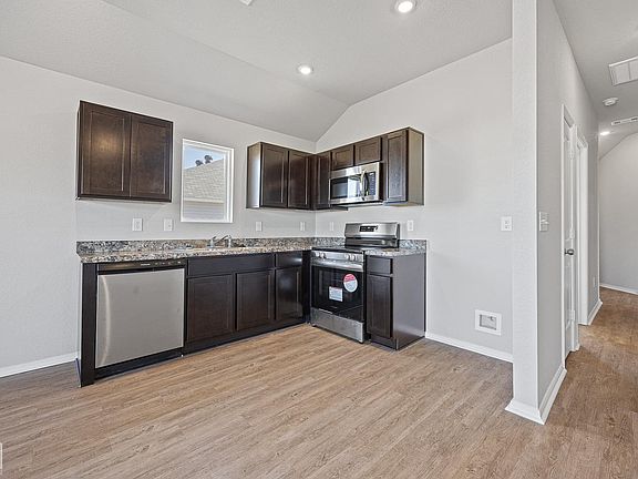 Embrace the charm of the Carlie II plan, a 3-bedroom, 2-bath home designed for seamless living. Its open floor plan encourages easy interactions, while the covered entry enhances curb appeal and makes a stylish entrance statement. Relax in the spacious living area and savor the inviting eat-in kitchen, complete with energy-efficient appliances. Step into your future and discover more about this remarkable home today! This home is complete. POA is $187.50 annually.