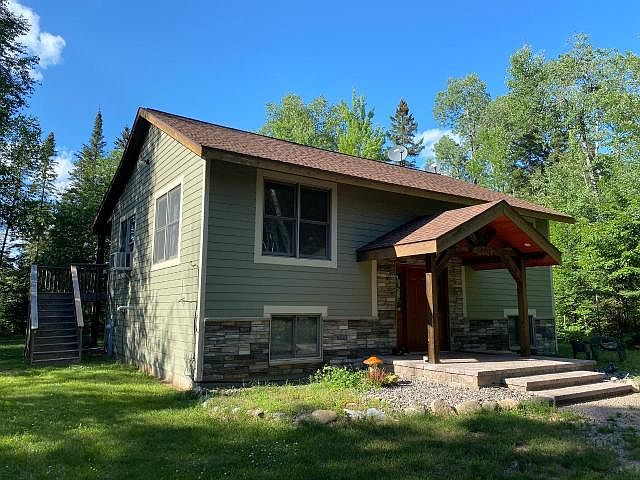 This North Woods property is the nature-lovers dream. Approaching the house, a custom-built entrance welcomes you. This 3BR home has a nice open-concept great room, bright and airy with incredible views. The island counter gives extra cooking space, making this a great working kitchen Start the day and take your coffee out on the covered deck, listening to sounds of birds and watching the deer wander through the yard. The lower level has a comfy rec room, full bath, laundry area and two rooms to lodge guests or use as office or hobby room. Walk out into the tastefully landscaped yard and enjoy balmy evenings and libations near the fire pit with a peaceful view of the water. There is a 3-car garage with a shop for storing toys and working on your projects. Just a few minutes to Eagle River for shopping, entertainment and restaurants; this property gives you solitude and convenience at the same time.