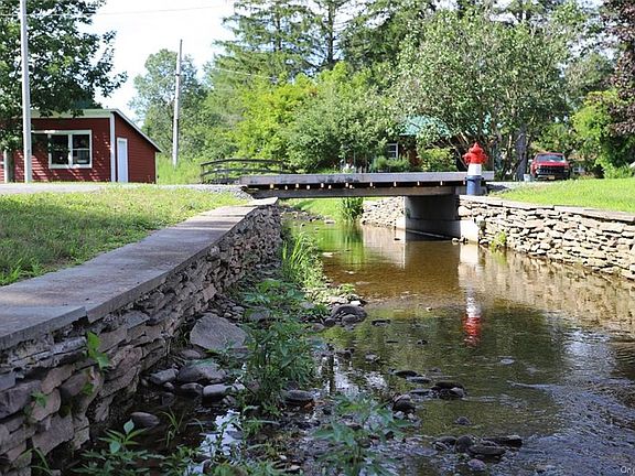 Solid and in good shape, this cape is a great place to call home. It's set on almost 3 level, groomed acres in Kohlertown, adjacent to Jeffersonville. The brick and stone exterior is low maintenance and lovely to look at. Inside there's hardwood floors, woodwork, fireplace, three bedrooms and one full and one half bath. Upstairs is extra heated open space for kids, friends or whatever you need. Lots of storage. Outside a huge sunny level lawn with a sweet stream and excellent 3-bay garage, a huge 70'x20' pole barn that will accommodate a motor home or boats, and an additional outbuilding for workshop or studio. Come plant a fabulous garden or play badminton or croquet games galore. This house and property has so much to offer. Walk to all the amenities in Jeffersonville.