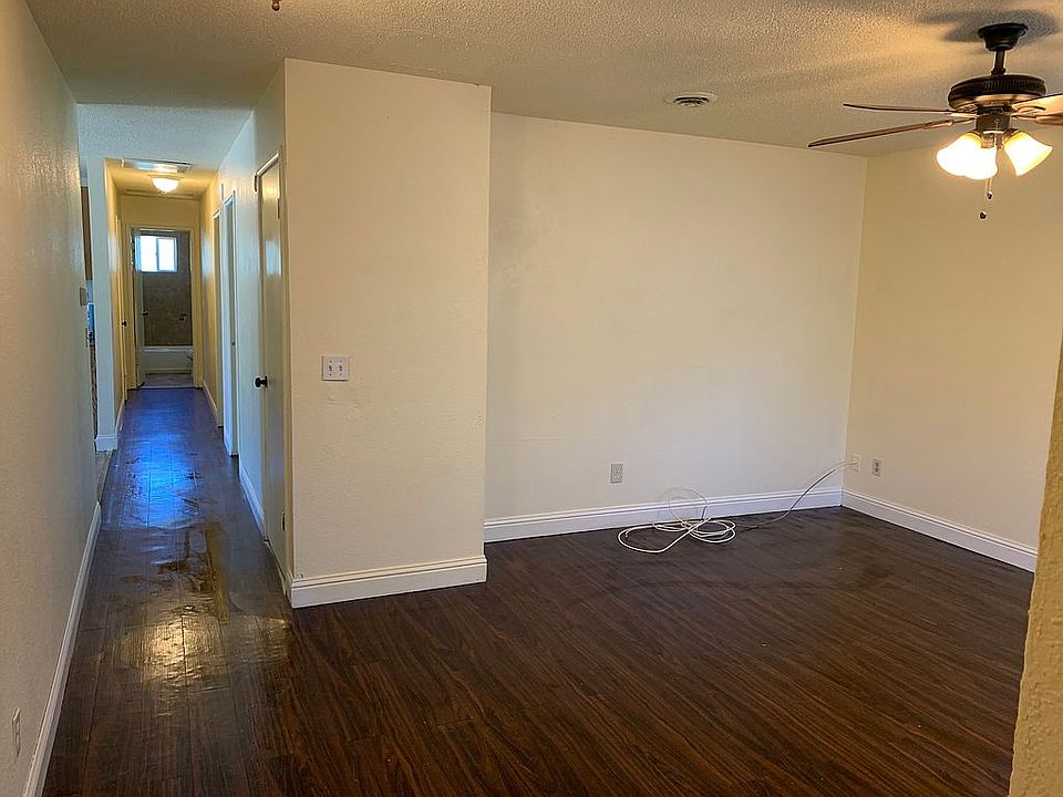 Huge back yard with trees, large patio and gazebo frame, smaller super secure dog yard. Kitchen has granite counters and big walk in closet in master bedroom. Owner pays water, sewer & garbage.