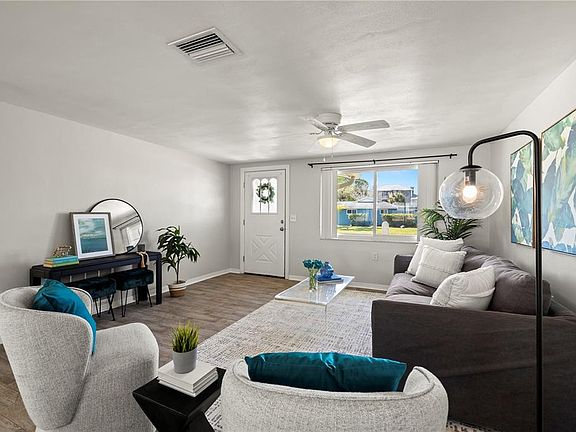 This charming 2-bedroom, 2-bath home features a spacious 2-car garage and a lovely Florida room with stunning water views. Situated on nearly half an acre, this property includes both the home and a large adjoining lot, offering plenty of room to build a pool, add fencing, or create your own private oasis. Enjoy direct water access right from your backyard! Launch a canoe or small johnboat and travel under a quaint bridge that leads straight into the Gulf. Located on a quiet dead-end street with no through traffic, this home sits in a well-established and peaceful neighborhood close to shopping, beaches, and great restaurants. Recent updates include all-new appliances, a brand-new A/C unit, and new kitchen cabinets.