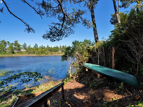 Hidden away on 2+ waterfront acres in a private setting, this beautifully updated lakeside home offers the perfect blend of comfort, convenience, and natural beauty. With views of nature from every window and just minutes from the sandy shores of Heceta Beach, this hidden gem boasts exclusive access to Heceta Junction Lake— one of only five properties with direct, private trail access to this serene, motorless lake ideal for kayaking, paddleboarding, and wildlife watching. Recent upgrades include a brand new roof on both the home and detached garage, new dual-pane windows, luxury vinyl plank flooring, and fresh interior and exterior paint, ensuring a move-in-ready experience. Vaulted ceilings and abundant windows make this bungalow feel spacious and bright.  Primary bedroom features ensuite bathroom and is separated from the two guest bedrooms for added privacy. Stay comfortable year-round with central heating and a newer furnace. Outdoors, you'll find a fenced yard perfect for pets or gardening, plus a spacious parking area that accommodates RVs, trailers, or multiple vehicles with ease. The private trail to the lake invites you to unwind in nature, launch your kayak, or simply enjoy the peaceful views from your own slice of paradise. Plenty of room to potentially add a guest house. Whether you're looking for a weekend getaway, full-time residence, or investment opportunity, this rare lake-access property offers unmatched privacy, modern comforts, and access to some of the Oregon Coast’s most treasured natural beauty.