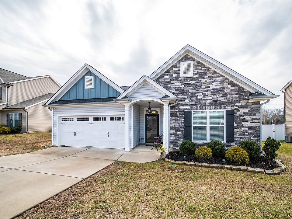 Exceptional find in the heart of Sedge Garden! Like NEW with NEW LVP flooring and custom closet in primary BR. Open floor plan with 9 ft ceiling, recessed lighing, stone fireplace with gas logs. Kitchen features granite countertops, subway tile backsplash, island w/ breakfast counter and feature plank, farmhouse sink, slate appliances and pantry. Nice split bedroom plan with dual sinks in both baths. Enlarged patio area and vinyl privacy fence. Lot extends beyond fence. All applicances remain - NO HOA!! Kernersville mailing address/ city of Winston-Salem. W-S water/sewer.