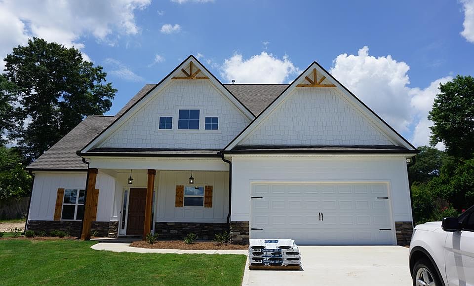 Hanley A floor plan features 4 bedrooms, 2.5 baths with master on the main. Vaulted great room open to kitchen with island.Spacious master bedroom with his/hers walk in closets and bath with garden tub and separate shower. 3 bedrooms upstairs - all with walk in closets! Covered Back Porch