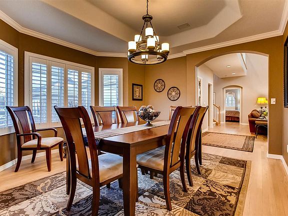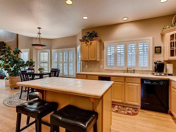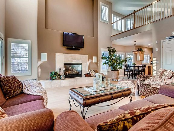 Huge Price Reduction! Best value in this gated community abuts to Cherry Creek State Park & rarely do homes come up for sale. Elegant, sunny 2-story great room is anchored by a stunning fireplace featuring oversized hearth & decorative niche. Spacious gourmet kitchen w/ gas cooktop, double ovens, convection microwave, trash compactor, dishwasher, French door refrigerator, kitchen island, planning desk, pantry & breakfast nook. Formal dining room w/bay windows & tray ceiling. Master suite sleeping area overlooks the 300 SF deck w/ retractable awning; 5-piece bath boasts generous walk-in closet w/ built-in organizers. Powder room sports handsome travertine wainscot. Hardwood on the first floor. Planation shutters throughout. Upstairs: 2 bedrooms w/ ensuite full baths & huge loft & mountain views. Basement: Rec room w/ built-in area for home theater will accommodate the largest of TVs. Large wet bar w/ built-in. Striking home office. Garden level bedroom w/ walk-in closet. Mins to DTC!