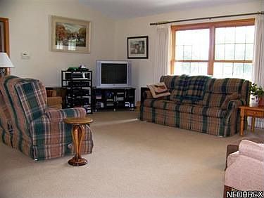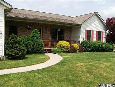 Open floor plan. Great room w/woodburning stove, ceiling fan, slider to deck. Eat-in kitchen, oak cabinets, breakfast bar, pantry, all kitchen appl's stay. Master suite w/ceiling fan, walk-in closet, 2 additional closets, shower, linen closet, single sink vanity. Full 11 course basement w/garage access. Wood deck. Outbuilding. Newer chain link fence. 2 X 6 construction.
