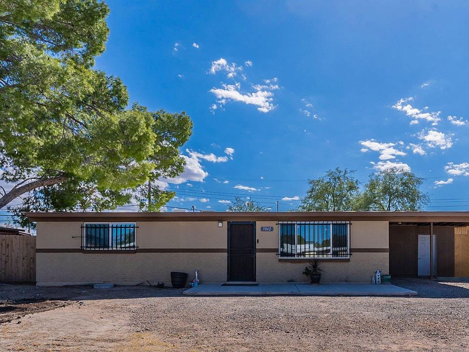 The beautifully updated 940 square foot, 2-bedroom, 1-bathroom home offers a perfect blend of comfort and style. Step inside to discover a modern kitchen with the latest updates, stainless steel appliances, an eye catching backsplash, complimented by new flooring throughout. The master bedroom boasts a walk in closet, offering ample storage space for your wardrobe. Outside, you'll find a large storage area, perfect for keeping your outdoor gear, tools, or seasonal decorations. The expansive, pool-sized backyard is a true highlight, featuring a covered patio and pavers, ideal for entertaining or simply relaxing in the serene surroundings. Low care landscaping in both the front and backyards, as well as a carport. Enjoy the convenience of nearby parks, shopping centers, and dining options. Don't miss the opportunity to make this delightful Tucson home your own!