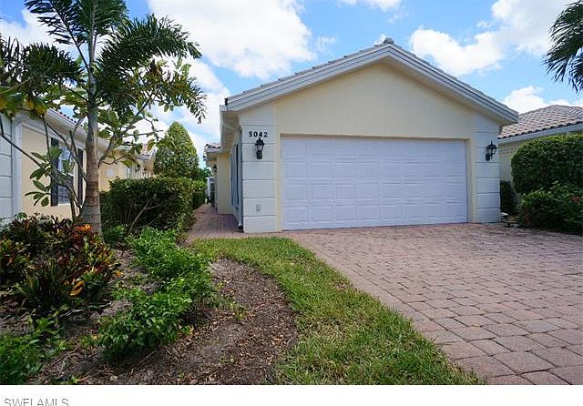 You MUST SEE this beauty! This 2/2 villa with the preferred SOUTH FACING POOL and stunning lake view has the WOW factor. Exotic granite counters with glass tile backsplash and stylish tiled flooring makes this Capri a standout. Located just a short stroll to the many amenities offered at Town Center, this 2 Bedroom, 2 Bath villa with an attached 2 car garage features many decorator touches that will satisfy the most discriminating buyer. Check out the Master Bath with the beautifully tiled shower complete with frameless glass doors for easy access. The popular open kitchen is perfect for entertaining and the spacious caged lanai with its stamped concrete floor and pool overlooking the lake provides a relaxing backdrop for enjoyment of the Naples lifestyle in a luxury Award Winning Community. Extras include a newer A/C (2013), a customized wall unit, easy to use accordion storm shutters, central vacuum and a security system. LOW FEES and NO CDD give you amenities galore. Come and make this home your address in Paradise.