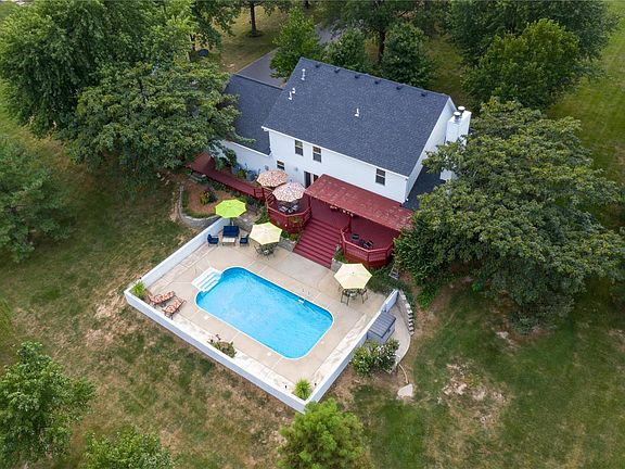 This 1-1/2 story underwent a complete transformation, and may as well have been new, in 2013! This relaxing 3 acres could be for you. Everything you want; a wrap-around porch, views to a waterfront, a pool, a stunning kitchen, a finished basement and 6 garage spots (3 in a detached garage with 200 amp service and storage level). Over 4400 ft.² of living area. You will love the flow of the main level with its study and dining room up front and a large family room and beautiful kitchen which features plenty of counters, storage, and seating. You will congregate in the heart of this home. Extensive trellis and deck work descend a few steps to pool level. Firepit. Lakeshore across back of property. All sizeable bedrooms and baths upstairs. Functional rec room, wetbar and bath in basement. 2 fireplaces. Dual HVAC. Plaster walls. Quality everything. Surround sound and outdoor speakers. Great location. Freeburg Schools. Easy access to SAFB and STL. See the HD video and schedule a visit.