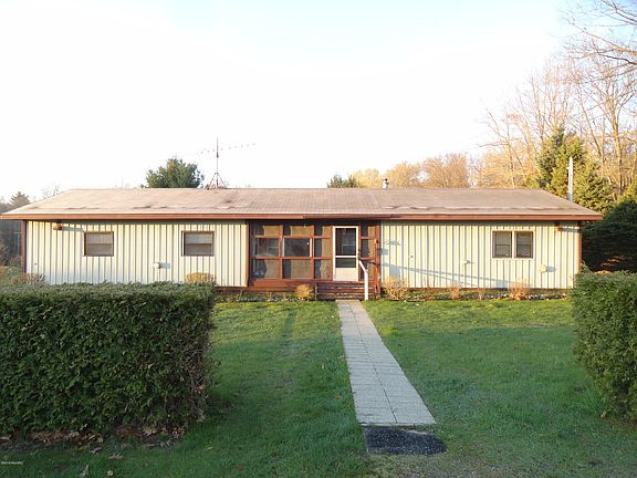 Beautiful 19.5 acre parcel on paved road, open rolling meadow and hardwoods at the rear. The home features 3 bedrooms, 2 baths, covered porch, two sheds and 40 x 28 pole barn garage.