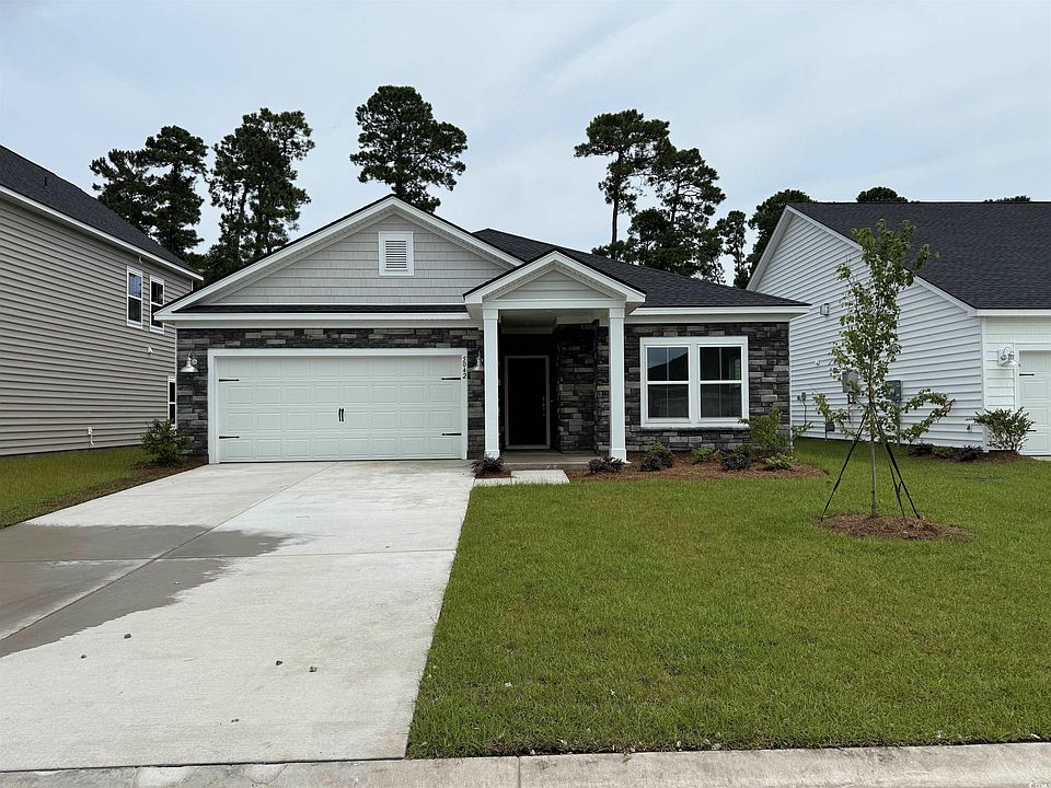 This home is a To Be Built estimated to close in July 2025. The Litchfield II plan is a 3 bedroom 2 full bath open concept floor plan. The homes in Arcadia include upgrades like tile in the owners bathroom shower, LVP flooring, quartz counter tops in the kitchen, stainless steel appliances including a natural gas range, built-in microwave and SS dishwasher. Also included are upgraded white cabinetry with 36" and 42" staggered cabinets topped with crown molding and subway tile beneath, all standard! Additionally, a gas fireplace, gas tankless Rinnai hot water heater, and covered rear porch are also all standard features in this home! Amenities are amazing... zero gravity pool, pickle ball, play ground, club house, fitness center & firepit. WOW! Come see why we have sold out so quickly on the first 3 phase, and why you should act now to capture your dream home in our last and final phase. **Photos are of a similar model home in another community, and may include upgraded features not offered.