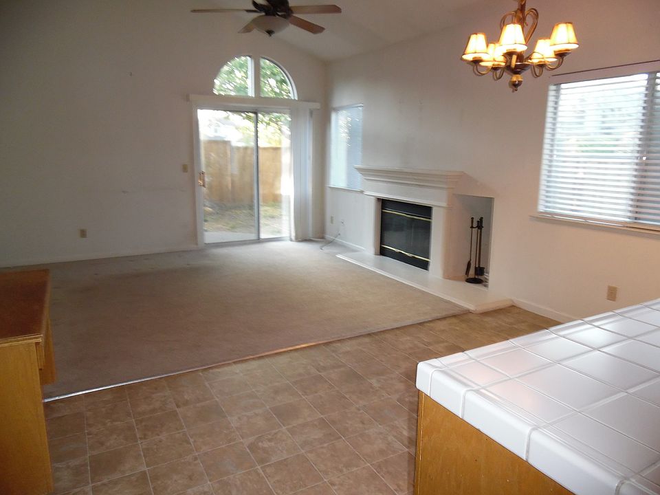Tons of cabinets, inside laundry, super vaulted ceilings. Kitchen has large island. Master bedroom / bath has jetted tub, double sinks, big walk in closet, slider off master to patio.