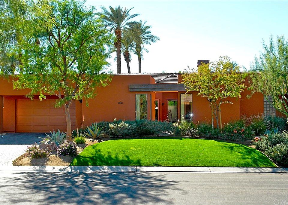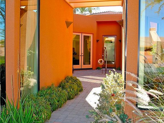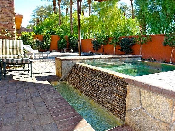 Stunning, award winning Ocotillo Plan, located on a quiet cul-de-sac. Amongst 8 acres of meandering lakes, including exclusive golf cart gate access for Citrus Golf Club members. "Wow" is your response when you enter the front door, & look beyond the 9 foot sliding glass doors of the Great Room & Bar to the tinkling waterfall spa embedded into your totally private 40'x10' salt water lap pool. No expense spared with $44,000 of documented builder upgrades. The soothing Surround Sound system relaxes you, as does the quintessential Southern views of the Santa Rosa Mountains. Your exceptional kitchen, has an abundance of Black Galaxy granite countertops & splash-backs. Thermador Double Ovens and an Instant Hot Water Dispenser offer you that extra touch. Over 1,800 sq.ft. of Travetine throughout, surrounds you too in your Master's Spa Tub and Step-in Shower. Palmilla's 24 hour human guard-gated community offers you the utmost in privacy, plus night patrol security. HOA dues cover maintenance of all the community lakes & common areas, but also plant, tree & grass care in your front yard. Covered too is landscape lighting maintenance, garbage pickup from your back yard and periodic painting of stucco & trim. Please note that Courtyard maybe gated off, if desired.