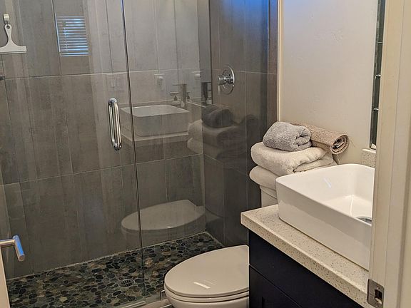 Gorgeous fully furnished home in the heart of Tecolote Canyon. Canyon views no neighbors behind you ever! Close to everything, 5 freeway, downtown, PB, La Jolla, shopping, restaurants, hiking, fiesta island, sea world. This is prime location! Quiet neighborhood family friendly. This house was completed remodel a few years ago and is immaculate. Huge island for entertaining, tons of counter and cabinet space. Custom bathrooms, 2 stand up showers, no bath tub. Full size bunk beds with workspace. Gas fire pit in large fenced yard. Washer/dryer, pets welcome. Month to month lease, will consider longer term. No smoking inside house, Tenant pays all utilities.