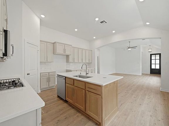 - August completion! ~ This charming full-brick, one story home features inviting front and back covered porches, perfect for relaxing and enjoying the outdoors. The upgraded kitchen boasts a wood-wrapped island with quartz countertops, single bowl stainless sink and stylish two-toned cabinets. Built in dining hutch offers extra storage, serving area or the perfect spot for a coffee bar. Unwind in your luxurious primary bath which features a gorgeous drop-in tub, glass-enclosed shower. With upgraded floor-to-ceiling tile accents, this is the spa-like retreat is the ultimate in relaxing after a busy day. This open-concept Carlton floor plan features a stunning wall of windows in the family, dining and kitchen, flooding the space with natural light creating a bright, open ambiance. Beautiful architectural detailing creates room separation without sacrificing space, while impressive upgrades add a touch of luxury to this cozy home.. Owner pays for all utilities