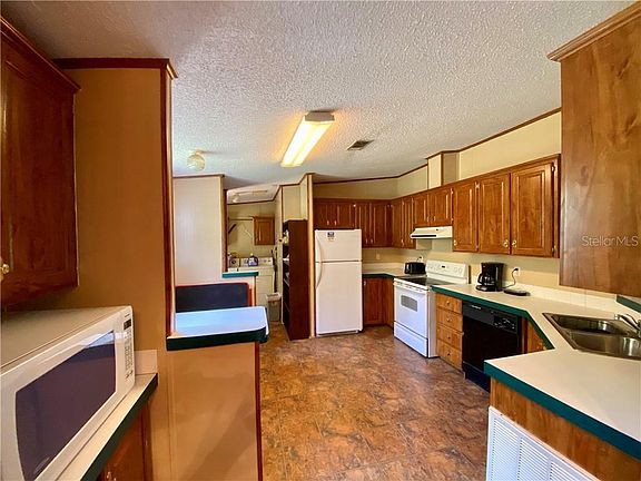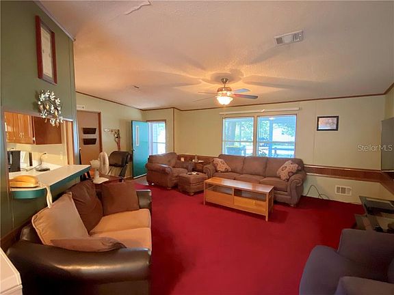 With almost a half acre, with fenced back yard and 2 sheds, this 3 Bedroom, 2 bath split bedroom plan home is a 1996 with a newer roof and AC (both 2017). You'll love sitting on the screen front porch or enjoying the expansive back yard on your back porch. Ramp extends from driveway all the way to the front porch, all porches built with pressure treated lumber. Large living room with adjacent dining welcome family and friends. Master has double doors and bath has both garden tub and full size shower, dual sinks. Secondary bedrooms and bath on the other side of the home. Spacious kitchen has lots of storage, counter space and a built-in booth which can be removed for eat-in dining table. Convenient inside laundry leads to the back porch and wonderful high and dry back yard which has double gate on driveway side: room for gardening, parking boats, RV or whatever! AC system has HEPA filter. No HOA. Located close to shopping, medical and I-4 exit between Tampa and Orlando. Find affordable, comfortable, spacious living here: inside and outside your new home.