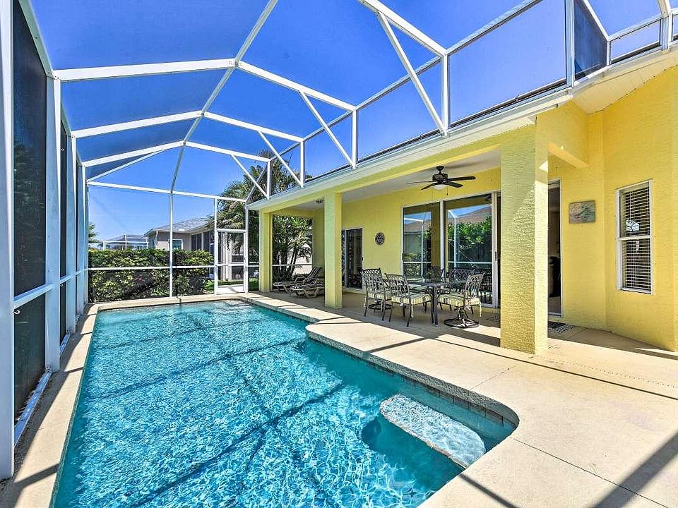 Bright and cozy furnished (or unfurnished) House in South Bradenton, just 7 miles from Cortez Beach and right across IMG Academy! 4 bedrooms, 2 bathrooms, a full kitchen with stainless steel appliances, and a screened lanai with a private heated pool and gas grill, this rental feels like home. The minimum period of rent is 6 months. 1 month security deposit. Additional $100/month if the Lease term is up to 12 months.
