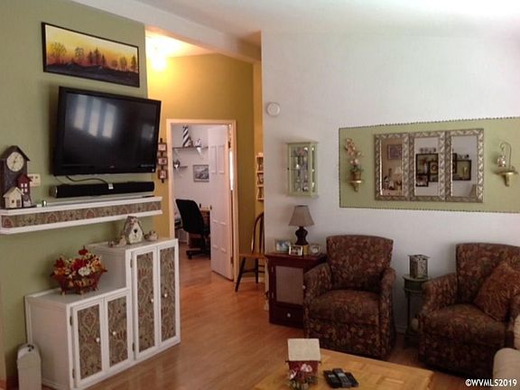 Accepted Offer with Contingencies. Nicely updated split bedroom floor plan for this Goldenwest with privacy fenced, lovely landscaped backyard in Briarwood's all-age park. Laminate floors throughout; glass-top range, refrigerator, washer/dryer included; heat pump for heating/cooling; vinyl windows; vaulted ceilings; Plantation blinds; solar tube in kitchen; master bedroom with walk-in closet has slider to backyard covered deck; master bathroom accessible from utility, too. Workshop with electricity in backyard.