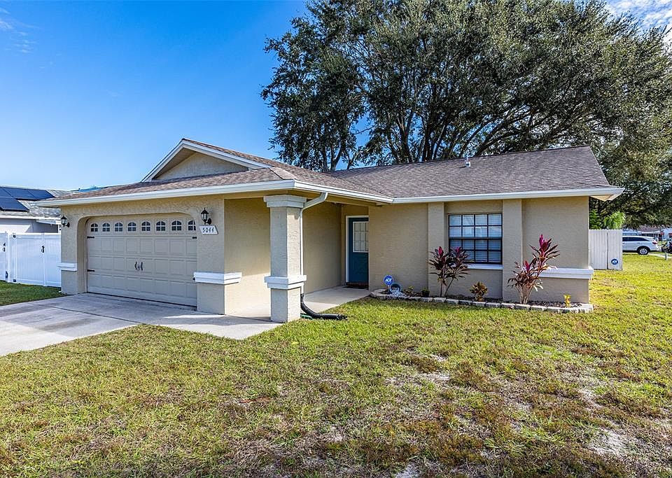 Located on a large corner lot, This ADORABLE, SUPER CLEAN 2 bedroom 2 bath home is located in the wonderful neighborhood of Deer Park in New Port Richey and is move in ready......you don't have to do a thing! Very sadly the Sellers have had to relocate to be closer to family and work. This home is absolutely spotless and move in ready...even the grout has been steam cleaned and looks like new. And the hard wood floors have been cleaned and polished to a beautiful warm luster. Over the past year they have lovingly made several wonderful improvements. What was once an all dirt backyard is now a beautiful and inviting yard with all new sod, white privacy fencing and a beautiful oak tree that has been defined with a block border and comes complete with its own tree swing! There is a large double gate on the side of the house that allows for storage of your large toys within your gated back yard. There is is a new paver patio outside and the screened in lanai flooring has been redone with an epoxy finish. The roof is 7 years young and the new HVAC was installed on 7/29/2021. The bathrooms and the kitchen were updated in 2021 and features beautiful butcher block countertops.The bedroom carpet was also installed in 2021. New gutters and downspouts have been installed this year. To top everything off there is a large super clean two car garage that has such a shiny flloor that you can actually see your reflection! Come and see this house today so we can put a BIG RED BOW ON IT FOR THE HOLIDAYS!!!