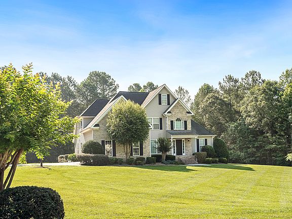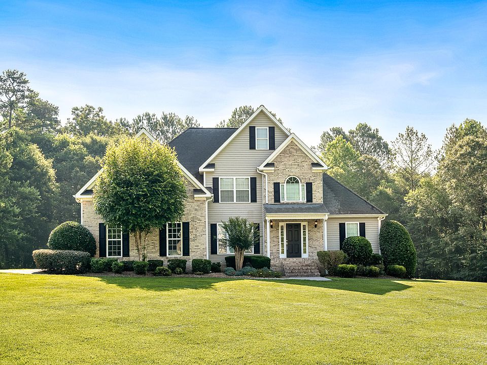 The home features 2,970 sq ft Open floor plan with a spacious living room w/ gas fireplace. Updated kitchen is equipped with double ovens, granite countertops and breakfast area, formal dining room, master on main w/ walk in closet and master bath w/ jetted tub & double vanities! Second bedroom on the main as well with second full bath. Upstairs hosts 4 bedrooms, 2 full baths, bonus room & walk-in attic storage.  Two car garage, Back patio is spacious, great for cook-outs and entertaining. The large backyard surrounded by woods is waiting for a nice inground pool.