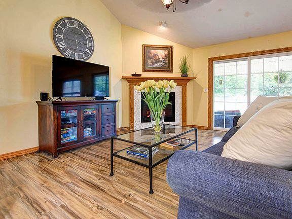 Located in Oak Run Subdivison one owner home. New Roof in 2020, and HVAC replaced in 2022. Open Floor plan with vaulted ceiling in Great room, gas fireplace. Granite Counters, Gas Stove , Stainless steel refrigerator and dishwasher , washer and dryer also stay with the home. Laminate flooring in Living Kitchen, laundry and walkways. Covered Patio and park like privacy fenced backyard.