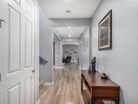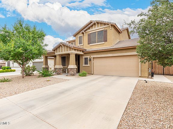 Stunning Move-in ready home with sparkling pool. This 2449 sq ft, 4 bed 2.5 bath home offers tons of beautiful cabinetry with underlighting in the chefs delight kitchen, ample workspace and upgraded counter tops, kitchen island with breakfast bar and Stainless-Steel appliances. Spacious family room, Surround sound with Bluetooth plus a den/office/bonus room. Custom security front door. Spacious primary with en-suite that features double sinks and walk-in closet. Cool off in the summer heat with your own sparkling pool with water feature and beautiful Travertine, extended patio with Travertine, real grass for your pets/children and a gas stub perfect for a firepit or built-in BBQ plus Fruit Trees. 3 car tandem garage and RV gate. New AC and Furnace 2023, New Water Heater 2023, New Dishwasher 2023, Interior Painted 2022, Great location close to the new Legacy Sports Complex, Freeway, Mesa Gateway Airport, Shopping and Restaurants. This home won't last so schedule your private showing today