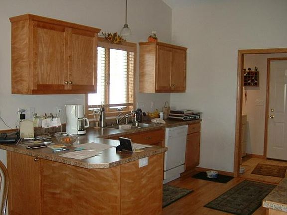 Townhome in excellent condition. Sunroom, hardwood floors, maple cabinets w/ special lighting. Vaulted ceilings, kitchen, dining room, living room & master bedroom. Handicap accessable. 36' Doors. Garage is insulated & sheet rocked w/ pull down storage.