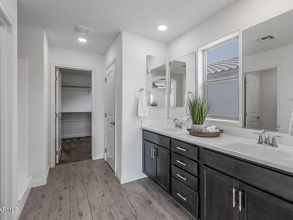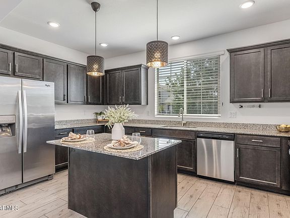 Welcome to this stunning home, where numerous features and upgrades abound. As you enter, you'll be greeted by a spacious and open great room that seamlessly flows into the kitchen area. Fresh new paint and upgraded wood-look tile flooring create an inviting atmosphere. The kitchen is a chef's dream, featuring stainless steel appliances, a gas stove and range, granite countertops, rich cabinetry, pendant lighting, and a generous island. The first floor includes a convenient bedroom and a full bathroom, ideal for guests or use as a home office. Upstairs, discover a versatile loft and three additional bedrooms, including a luxurious master suite. (CLICK TO READ MORE) The primary suite offers a walk-in closet, a walk-in shower, and a double vanity. Outside, the side yard is beautifully landscaped with pavers, plants, and string lighting, creating a perfect space for relaxation. Just like a world-class resort, this community offers a luxurious community pool, splash pads, numerous parks spread throughout, the Steadfast farm, and its very own state-of-the-art clubhouse "The Mark". The Mark hosts events throughout the year and a wide variety of family-friendly games to play. Don't miss the chance to experience luxury living at its finest and make this exceptional home yours!