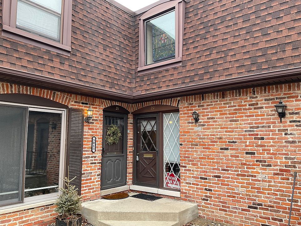 Welcome home to this two story, end unit Condo, which combines the spaciousness of a home with the conveniences of a condo. The only unit with over 1800 sq. ft. of living space, this condo has 3 bedrooms, 2 full baths, and a half bath for guests. Located in a quiet location, away from the main road, this Condo faces into a nicely landscaped Courtyard. The 3 in-ground pools are a short walk away. Standing in the 2 story Foyer, experience the expansive floor plan and modern loft decor. The Foyer opens into a large Living Room with a brick accent wall. From the Living Room, step down into the expansive Great Room, with 3 large sliding glass doors, flooding the space with natural light. The back sliding glass door allows convenient access to your two designated, covered parking spots, and guest parking. Two glass sliding doors open to a private, fenced-in patio, perfect for grilling and entertaining! The unique spiral staircase leading up to the Primary Bedroom adds both function and beauty. The well-maintained Kitchen has plenty of counter space, storage and all appliances are included. A potential office or breakfast nook is available in the well-lit room off the Kitchen. The Primary Bedroom has its own full bath, two large closets, including a walk-in, and a sitting room. Enjoy beautiful sunsets out of the large windows! Two other bedrooms share a full bath. One bedroom opens to the foyer. Basement has washer & dryer and lots of room for storage. Pets are allowed with prior approval. HOA includes gas, water, trash & snow removal.