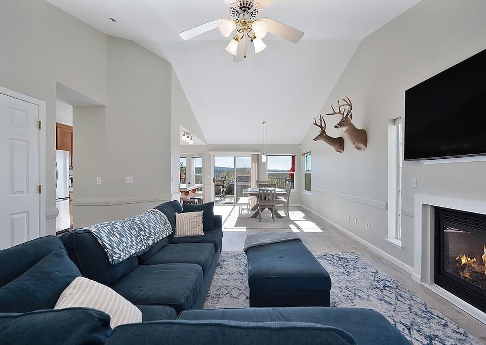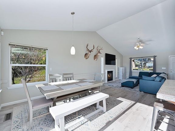 Welcome to your country retreat with AMAZING VIEWS! Nestled on 4.7 peaceful acres, this single-story home offers 1,392 sq. ft. of comfortable living with 3 bedrooms and 2 bathrooms. **PRIVATE ACCESS to a resident-only picnic area and river. Large back deck offers privacy, relaxation and panoramic views. Inside, you'll find fresh interior paint and vaulted ceilings that create a bright and open atmosphere, a kitchen with granite countertops, and a spacious living area perfect for everyday life. The large master suite features private deck access, ideal for enjoying the sweeping views. 2 additional bedrooms offer functional space and more property views. Outside, a paved driveway leads to a detached garage, while the fenced garden and multiple fruit-producing trees invite you to embrace country living. A storage shed with electricity adds extra convenience for hobbies or equipment. 3000gal water tank added June 2025. NEW well pump added June 2025.New front lawn August 2025. Sept 2025-400 ft of pipe replaced in the well and NEW pump at the bottom of the well. Generator hooked and stays at property. Fruit producing trees include apples, plums, apricots, and pomegranates. Walnuts too! Rosemary and lavender can be found throughout the property.