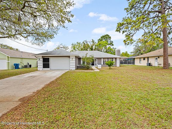 ACTIVE WITH CONTRACT ~ Spacious 3 bedroom 2 bath POOL HOME ~ Must see this Concrete Block/Stucco home with 1,750 sq ft of living space, Newer A/C 2023 + Roof was replaced in 2009. Big family room with zyrian stone wood burning Fireplace, Eat-in Kitchen is centrally located & includes all appliances + breakfast bar with extra seating space. Living room has wood laminate flooring, dining area & foyer has ceramic tile flooring. Offers a split bedroom design for more privacy. Enjoy the screened pool on those hot summer days, and cook-outs & parties in the 22x10 covered lanai. Partially fenced backyard. The 2 car garage has plenty of space including the Washer/Dryer area. Great location to enjoy the Gulf Beaches for swimming, boating, fishing & kayaking the beautiful Weeki Wachee River. Priced to SELL! Call today to make an appt to see this home before it's SOLD!