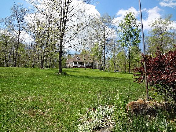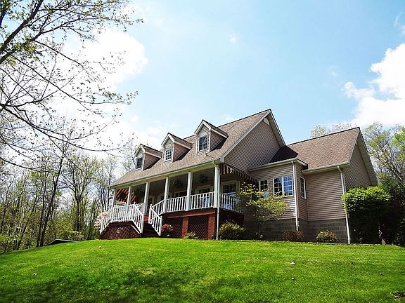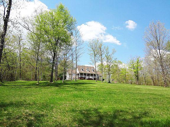 A romantic and picturesque 5 acre M/L park like setting is the highlight of this exquisite 3 bedroom, 2.5 bath, 3360 sq. ft. home perched above the large stocked pond and gazebo. Traditional Cape Cod exterior with sweeping front porch and inside a dramatic open floor plan just perfect for entertainment. The gracious foyer boasts a curved stairway and sitting area. Straight ahead is the massive living room with cathedral ceilings, upper hallway balcony, cozy gas fireplace/stove, a wall of windows and French doors to the covered back deck. To the right off the foyer is the holiday size formal dining room with hardwood floor and view of the pond, beyond is the eat in kitchen with walk in pantry with counter, breakfast bar, granite counters and tile floor. The eating area is surrounded by windows and pond view. Off the kitchen is a spacious laundry room and mud room. The spacious master suite is off the foyer sitting area. Easily accommodates your king bed and has a view of the pond. The master bath has a jetted tub, heated tile floor, 2 sink areas, 4 ft. tile shower and a large walk in closet. Up the dramatic curved stairway are 2 more spacious bedrooms with large closets. The hallway bath has a shower, tile vanity counter, and a laundry chute. The lower level has a fun family room with Berber carpet and new paint. Storage room with lots of shelves. Office area has a DSL line. The large workshop has a wood burner, and dry door to the outside and the storage shed and wood shed, shelves and freezer stay. Just 3 miles and 10 minutes to Athens.