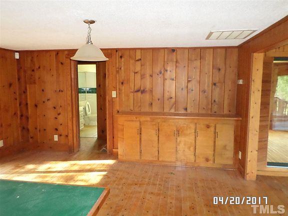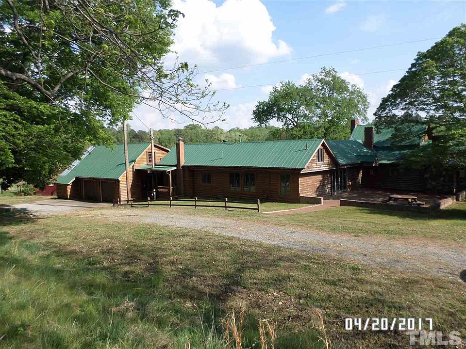 Rare opportunity to feel so rural but be so close to Durham and Chapel Hill. Spacious log home on 11+ acres. Some indications that the original cabin is from 1860s. Natural light floods through sliding glass doors into many rooms that could serve multiple uses. 3 bed/3 bath home. Two screened porches and large deck. Several outbuildings. 2 bed/1 bath brick home also on property. Septic crosses thru utility easement. Must see to appreciate.