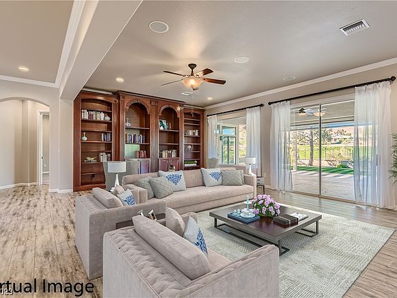 Spectacular Backyard View of The Mountains & the 15th Hole of Siena Golf Course. This Property Has Gone Through an Amazing Transformation With A Multitude Of Upgrades From The Repainted Exterior, Refreshed Front Landscaping, Repainted Drive & Side Walk, All New Back Fencing, New Landscaping Newly Painted Extended Patio- Outdoor Kitchen BBQ with Refreshed Firepit & New Artificial Turf (That’s Just the Outside) Go Inside to See New Luxury Tile Plank Looking Flooring throughout (Except for the Bedrooms with Upgraded Carpet) a Fully Remodeled Kitchen with All New Commercial Thermador Appliances, Counters with an Extended Kitchen Island for Informal Dining. The Office/Den has a Full Wall of Cabinets & a Murphy Bed System that comes with the Property. Primary bedroom is huge with an additional sunroon/exercise room added (15x8)