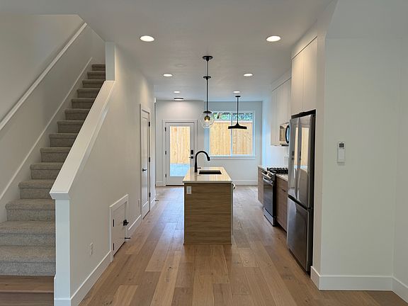 Available Now - Newly built, gorgeous, 970 sf, 2 bedroom, 2.5 bathroom townhome available for immediate move in. Location, location, location! This home is located just three blocks off our beloved Hawthorne Blvd; 43 blocks of delicious eateries, coffee shops, boutiques, bookstores, markets and more. Bike score 99, walk score 91, transit score 50. This home is a luxurious, corner unit which offers extra windows and designer touches throughout. The entry opens into this beautiful, open floor plan, with plank flooring throughout the first floor, bike rack in the entry cubby and crisp air conditioning. The home has a lovely dining space and open kitchen with island, Carrera Marble counters and a stainless steel appliance package which includes gas range, dishwasher, French door fridge and microwave. Solid surface counters and floor to ceiling cabinetry. The main level also features a lovely powder room, spacious living room and access to your private patio. Upstairs you'll find lush carpet throughout the hall and bedrooms, laundry closet with full sized, front loading washer & dryer and two bedrooms with ensuite. The light filled bedrooms have cathedral ceilings and private ensuite. The ensuite features floating vanity, designer tile work, heated floors and glass door shower. Outside you have a private, full fenced patio area perfect for a bistro set and gas grill. Application period open 10/1/24 Resident pays for water, sewer, garbage, electric and gas. Resident to maintain private patio area. 12 month lease, street parking, non-smoking property. Not an accessible unit. Pet Policy: one adult pet, breed restrictions apply, $35 monthly pet rent. Renters insurance required prior to and throughout lease term. $45 application fee for each person aged 18 and over. Screening includes credit, criminal, employment, income and rental history.