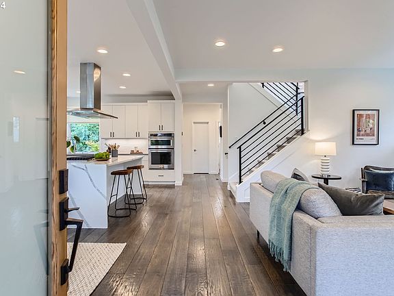 Welcome to this exceptional residence, custom-built in 2019 by certified Earth Advantage builder, Everett Homes. This modern contemporary beauty combines luxury with thoughtful design. As you step inside, you’ll immediately appreciate the expansive windows that fill the living space with natural light, creating an inviting and uplifting atmosphere. The open floor plan seamlessly connects the living areas, making it an ideal layout for entertaining family and friends. The inviting kitchen features quartz countertops, designer tile, energy-efficient SS appliances, and a 6-burner gas cooktop and built-in oven/microwave. The large pantry and beautifully designed cook island enhance both functionality and style, ensuring that everything you need is right at your fingertips. Retreat upstairs to the elegant primary bedroom, which features vaulted ceilings, oversized windows, walk-in closet and a luxurious en-suite bathroom. Two additional bedrooms and a well-appointed bathroom are conveniently located upstairs. On the lower level, you'll find a versatile fourth bedroom or flex space + bathroom ideal for guests, a home office, or a playroom. This area offers easy access to the tandem tuck-under garage, providing plenty of storage and convenience for daily living. Additional features of this remarkable home include fresh interior paint, an electric vehicle charging outlet, newer AC + gas furnace, tankless water heater for efficiency, and custom window shades throughout. Situated two blocks from Woodstock, this home provides easy access to an array of amenities, including shopping, Woodstock Elementary, library, parks, and New Seasons market. The desirable neighborhood is known for its community feel and convenient location, making it an ideal place to call home. HES 8! Bike Score 99! [Home Energy Score = 8. HES Report at https://rpt.greenbuildingregistry.com/hes/OR10184240]
