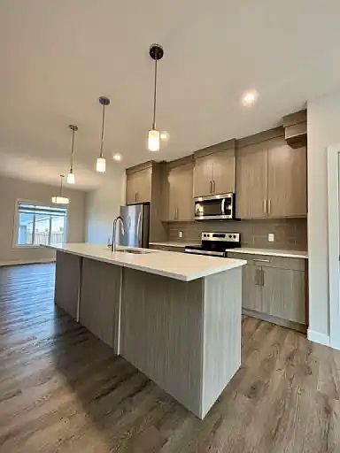 Welcome home to Creekwood Chappelle! This is an amazing new community in Southwest Edmonton. The developed area so far includes parks, Schools, outdoor fitness space, community gardens, and a social house! Restaurants, Groceries, medical, dental and more! Also with easy access to 41st Ave SW and QE11 or Anthony Henday, this is a great location for anyone who commutes. ETS Bus stop nearby. And a beautiful Pond and Walking Path just a block away.This 3 Bedroom Main Floor Features:Modern finishes throughout with 9' CeilingBright, Open concept Main floor with Large Kitchen, Living and Dining spacesThe Spacious Kitchen features Quartz Counter-tops, Light Grey Cabinets and Stainless Steel AppliancesPantry and Large ClosetsEat-up Counter on Island - perfect for breakfast time, or for guests to hang out aroundLOTS of Counter space!Open to the Dining Area - large enough for Family style table and chairsHalf bathroom, and Access out to the Backyard and Double Detached GarageUp to the Second Floor you will find the conveniently located Laundry Space with Full Size Front Load Washer and DryerPrimary Suite -- Bright with Large Windows -- Walk-in Closet -- Beautiful 4PC En-suite with Large VanityA 4PC Bathroom and 2 Additional Bedrooms finish off the Third Floor. They are Spacious, Bright and have Large Closets. They are perfect for your children, or for an Office or Guest roomDouble Detached Garage includedCustom Window Coverings throughoutThis is a Legal, Separate suite from the Lower floor, so you have your own Private Entrance, and your own Heating Controls/Furnace.This is a suited home with Tenants who occupy the Lower unit, so we are looking for quiet and respectful tenants.Base Rent: $1950 Fixed Utilities at $400 per month (Gas, Electricity, Water & Sewer)Deposit: $1950Our ideal tenant is employed, does not smoke/vape, and is looking for a long term rental. Lease is 1 year long, and renews provided all conditions are still being met. Tenant must maintain and provide proof of Tenant Insurance at all times.Note: Upon Application a credit check would be conducted, and proof of income would be required as part of the application. Upon approval, tenants are to provide proof of tenant insurance before possession day.1 SMALL Mature Pet is negotiable - will depend on type of pet, size and references.This property is privately owned but professionally managed by Precise Property Management (registered to Professional Realty Group). Only serious inquiries, who are pre-screened, will be offered a viewing time. Thank you for your understanding during these uncertain times.