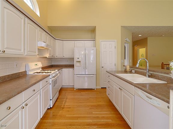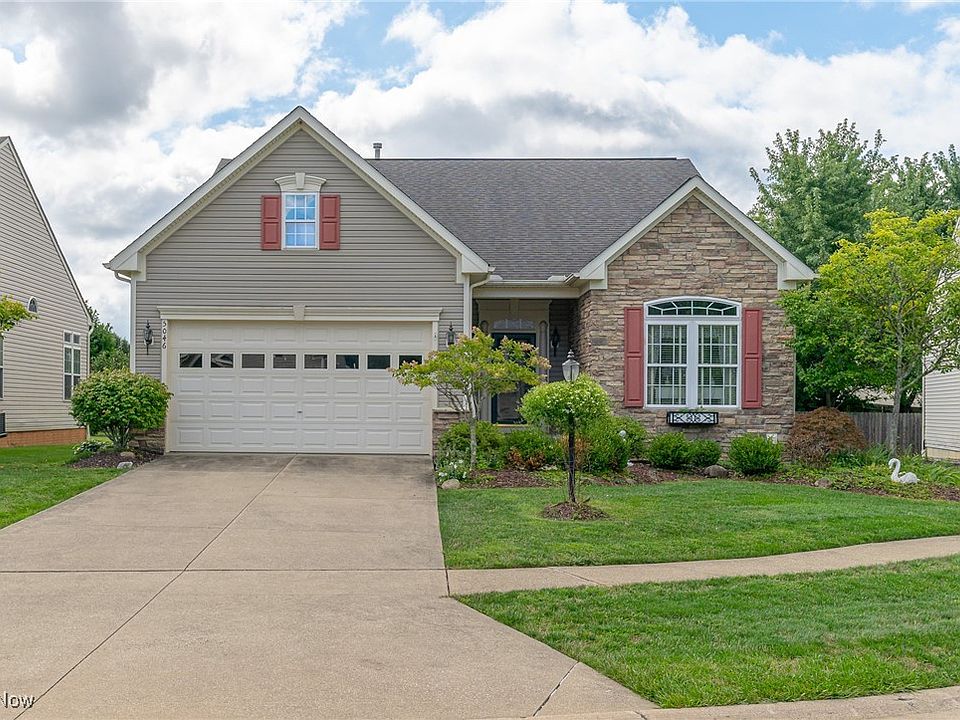 As you enter this fabulous, elegant contemporary one-story 1,714 sqft., 3-bedroom and 3 full bath home with architectural grace and an open floor plan, vaulted and tray ceilings, you will be greeted by the grand foyer flanked with majestic pillars and gleaming hardwood floors. This lovely home is perfect for entertaining and has beautiful views from every room. The foyer leads you to the fabulous, bright light kitchen featuring a center island, pantry, tons of custom cabinets and countertops, open to the great room and cozy eating area with sliders to the covered deck ideal for early morning coffee or just a quiet evening. Below has a beautiful, stamped patio and privacy fence. Huge inviting private master bedroom with en-suite bathroom, double sinks. walk-in closet and walk-in shower. Two more pleasant, ample-sized bedrooms are divided by a convenient full bathroom. Big first-floor laundry room with plenty of storage leads to the 2-car attached garage featuring nature stone, utility sink, and ample storage cabinets. You’ll be pleasantly surprised by the fully finished basement with engineered floors and carpet, recessed lighting, a kitchen/ dinette area, a full bath with marble shower and floor, large workshop with a utility sink. Plus, another spacious finished room. The furnace room has an epoxy-finished floor with tons of shelving and cupboards, and easy access to all utilities. All of this is nestled on a private cul-de-sac street, meticulously landscaped, and in-ground sprinkler system.