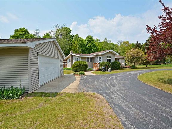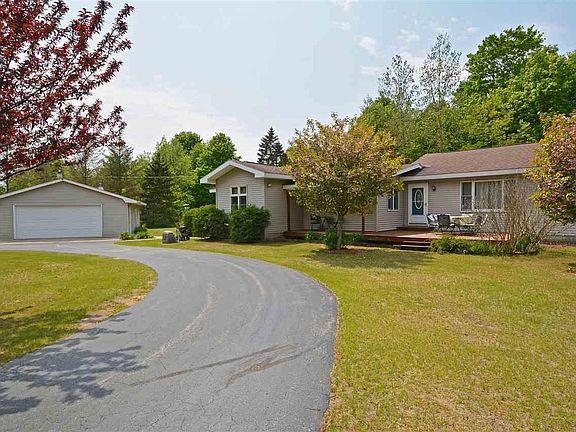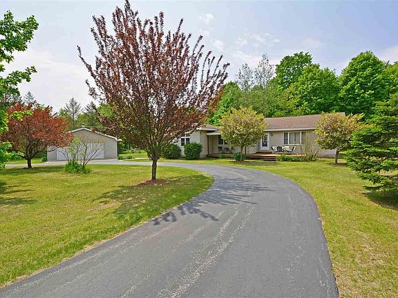Ranch-style home + huge polebarn all on nearly 4 acres. Peaceful living out in the country in this 1800+ sf, 3 BR/2 BA home. A few minutes from Crystal Mtn, state land, Betsie River, and necessities like groceries, restaurants, etc. Home amenities include: open floor plan, huge family/living room, big master on-suite w/ walk-in closet, partially finished basement, decks in the back and front of home, back patio with ticki bar and lots of flowers. Other perks include paved circular drive, 2-car detached garage, and 32X48 polebarn which houses its very own bar, still leaving a ton of room to store all the toys.