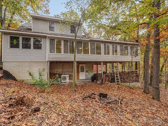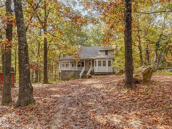 This enchanting property offers a 2672 sq foot home and 3.5 acres of lush woodland, perfectly situated near Shelvin Rock and James River, just south of Clever and Nixa. Embracing seclusion and wildlife, this unique estate boasts a charming one-and-a-half story house featuring a captivating transformation, as the once-covered deck/wrap-around porch has been converted into a splendid four-season room, with picturesque views of the property.The interior living space comprises a cozy living room with a fireplace, a well-appointed kitchen/dining area, a spacious utility area, and the beautiful master bedroom and full bath. Ascending to the second floor, you'll find a generous den/loft that overlooks the living room, a second full bathroom, and another inviting bedroom. The basement houses three additional rooms, two nonconforming, with additional storage space and offers the potential for customization to meet the desires of the new owners. Outside offers a convenient attached carport, and storage shed