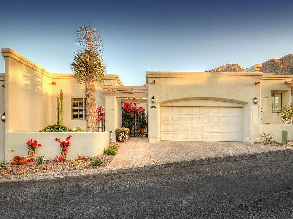 Gorgeous remodeled El Diamante Townhouse in the prestigious gated Skyline Country Club on one of the most beautiful streets in the community. The home features a gated courtyard entrance & a bright & open floor plan with picturesque windows that capture the dramatic views of the Catalina mountains. The beautifully remodeled kitchen contains the latest slate grey appliances & a large island with a gas cooktop. Perfect for entertaining with a stunning, serene back deck. The spacious master bedroom is completed with a large bathroom featuring an over-sized spa shower. You will love being walking distance from Skyline CC as you enjoy the use of of limited club amenities. Tucson living at its best!