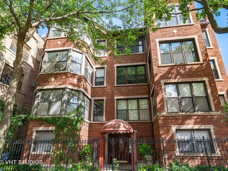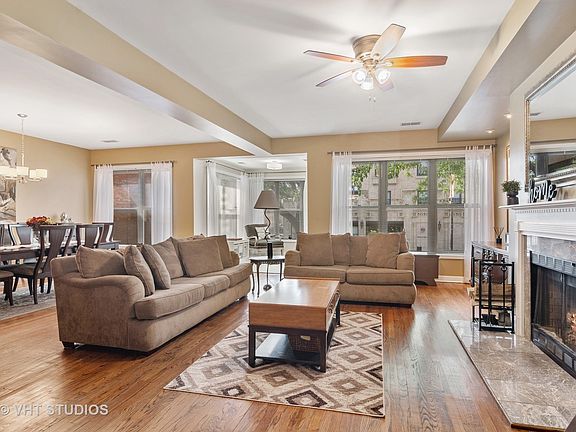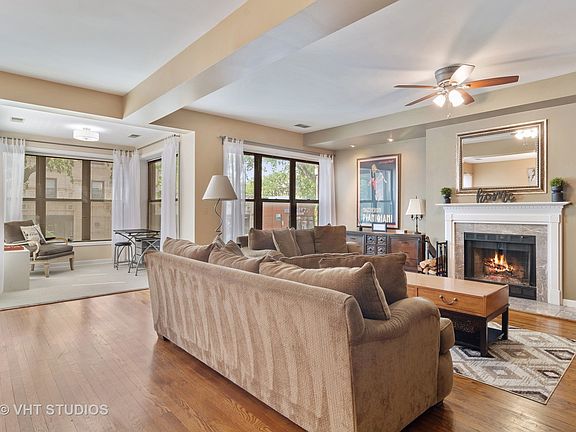 Generous and sunny 3 bedroom 2 bath high 1st floor condo! This stunning unit has a massive living room equipped with a wood-burning fireplace + dining area as well as a bright sun room. Tasteful kitchen with newer countertops/appliances and tons of cabinets. Master suite has a huge bedroom and a grand master bath with separate shower, dual sinks, and built-in storage. The second bedroom is bright and sunny with 3 windows and third bedroom is a great size also. Large laundry room has newer washer/dryer as well as additional storage. Two large sunny outdoor spaces one off the kitchen for easy grilling, and an exterior gated parking space are also included. Second parking spot may be available for rent. Steps to the lake front path, Mariano's and so much more. Easy access to LSD as well as Argyle Red Line. Classic Chicago building!
