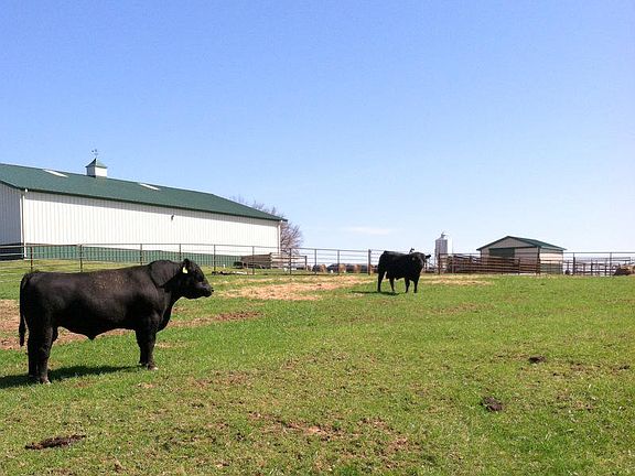 Fantastic 440 acre cattle farm located just off HWY 65 north of Springfield, MO. Every detail has been properly calculated on this set-up with excellent fencing for 12 paddocks, 11 Ritchie waterers and hydrants, 3 ponds and a year-round spring-fed creek to maximize beef production. Designed with numerous alleys, funneled traps and approx. 42,000 sq. ft. of pipe pens and corrals, this is a one man show for working cattle. Anyone will appreciate the 20'x20' chute barn for climate controlled cattle processing with permanent loading chute. The 54'x84' Morton Building has a 15'x28' finished office or apartment with bath and kitchen, huge shop area with concrete floor and ample equipment storage with massive doors and concrete apron at both ends. There is almost 40 tons of feed bin storage, to h