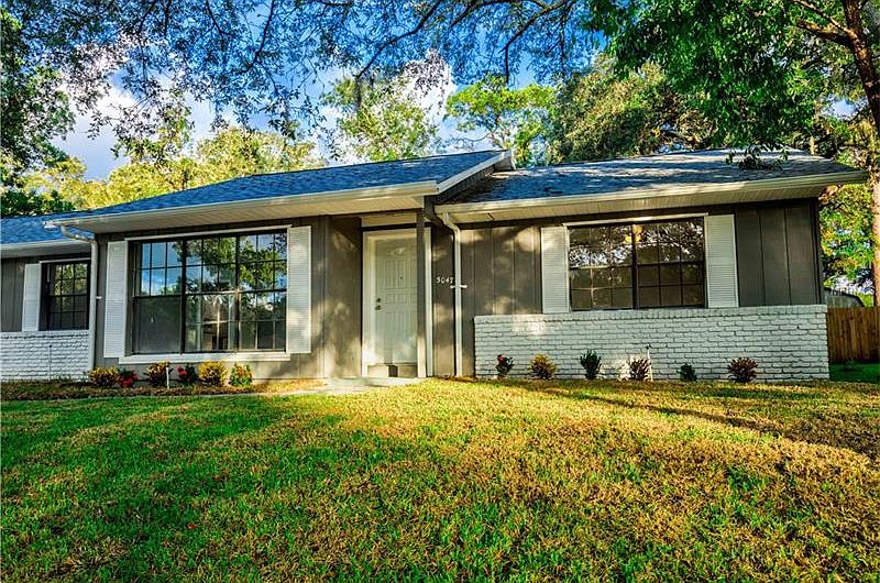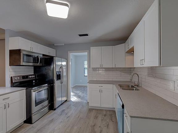 Gorgeous, modern renovated home with enclosed pool and huge backyard for entertaining. The roof was replaced in 2017 prior to purchase and all appliances, AC, water heater and fixtures are all NEW. Beautiful front pavers and landscaping welcome you into a ready to move in home. With a complete remodel, this home is highlighted with quartz kitchen counters, subway tile backsplash and new cabinets and hardware. GFCI electrical outlets, and bathrooms outfitted with contemporary tile. Step into your master bath featuring an Italian marble-top double vanity, and rejuvenate in your freshly painted pool (with a new equipment).
